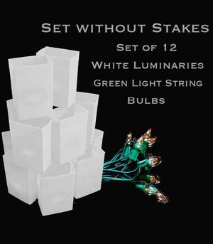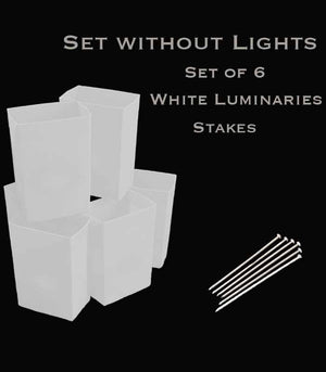 2. No Luminary Stakes - If you plan to use sand or small pebble stones to secure your luminaries no luminary stakes are necessary.